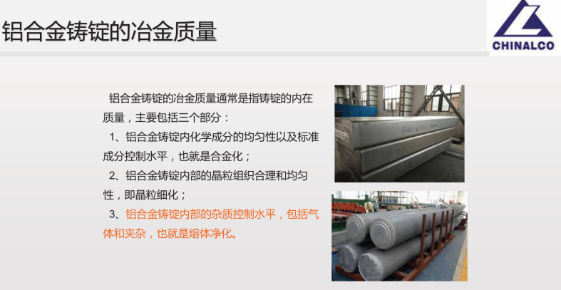 西南鋁業(yè)林林總工引入潔凈鋁概念,熔體凈化是鋁合金鑄錠質量的關鍵。AlTi5C0.2La無TiB2聚集沉淀及堵塞過濾網(wǎng)等影響,進一步減少了細化劑對過濾器過濾性能的影響,更少鹽類夾雜、更純凈,可進一步提高鋁熔體潔凈度,提高鑄錠質量及成品率。