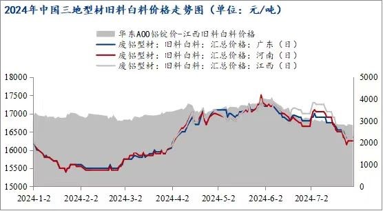 截止7月底,鋁價(jià)相對(duì)5月底高位時(shí)期下跌2800元/噸左右,下跌12.9%。而7月底再生鋁棒主要廢鋁原料之一的型材舊料白料價(jià)格在16250-16350元/噸,相比21700元/噸的鋁價(jià)高位時(shí)期,舊白料價(jià)格下跌1150-1200元/噸,下滑6.60%左右,廢鋁價(jià)格下跌幅度遠(yuǎn)不及鋁價(jià)。在鋁價(jià)持續(xù)回落的單邊行情下,廢鋁貨場來不及出貨,持續(xù)處于虧損狀態(tài)。受成本端支撐,貨場挺價(jià)惜售意愿較強(qiáng),市場上廢鋁流通量大幅減少,再生鋁棒企業(yè)采購困難,成本拉升。