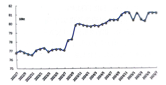 經(jīng)調(diào)整,7月份產(chǎn)量為376.4萬(wàn)噸;預(yù)計(jì)8月份產(chǎn)量為376.5萬(wàn)噸,同比增長(zhǎng)1.2%,環(huán)比基本持平。